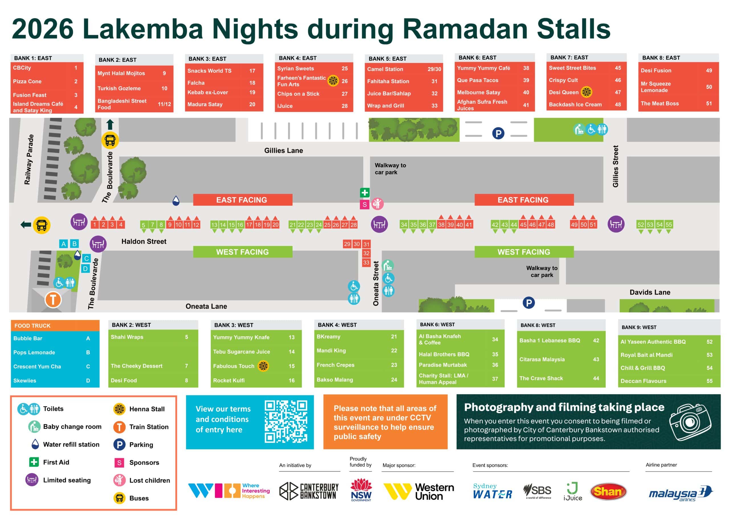 Yes, Lakemba Nights during Ramadan will still be on if it rains. However, in the case of severe weather conditions, the event may be cancelled for a night. To stay up to date on important event updates, please follow Where Interesting Happens and City of Canterbury Bankstown on Facebook and Instagram. Other event updates will also be available on this website when available.