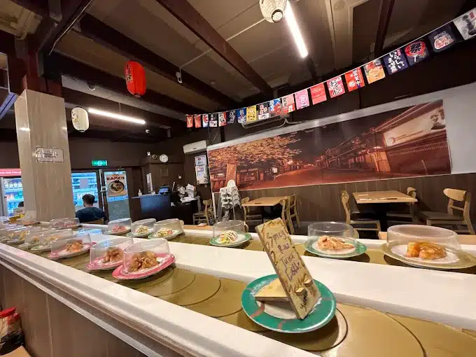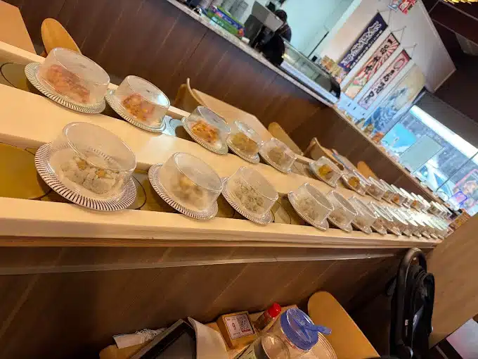 The sushi train keeps rolling with everything from salmon avocado to lobster and ikura, while the hot food lineup hits hard with karaage chicken, gyoza and crispy tempura.