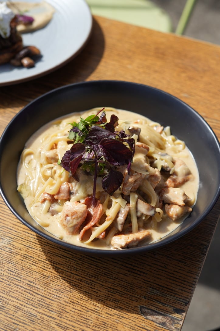 The mushroom haven on toast is earthy and satisfying, while the very berry buttermilk pancakes hit the sweet spot with ricotta, maple syrup and berry compote.